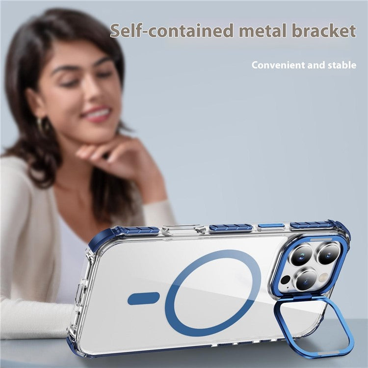 For iPhone 16 Pro Clear Phone Case with Lens Kickstand Cover Compatible with MagSafe - Blue