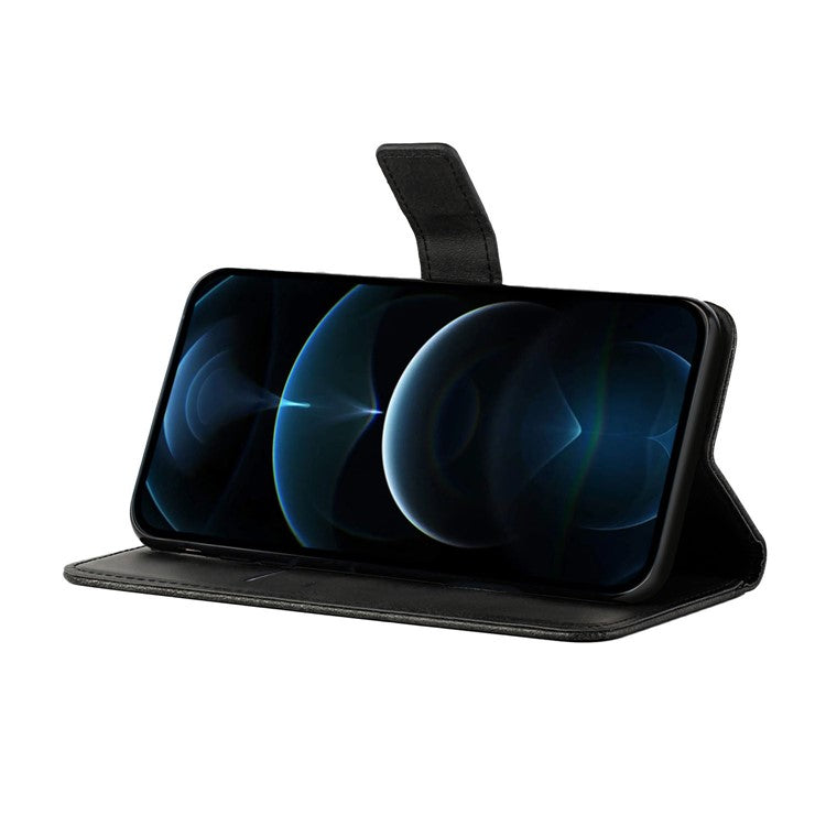 For iPhone 16 Pro Leather Case Line Pattern Wallet Phone Cover - Black