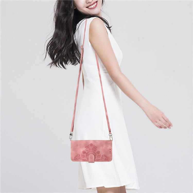 For iPhone 16 Pro Leather Case Multiple Card Slots Phone Cover with 2 Straps - Pink