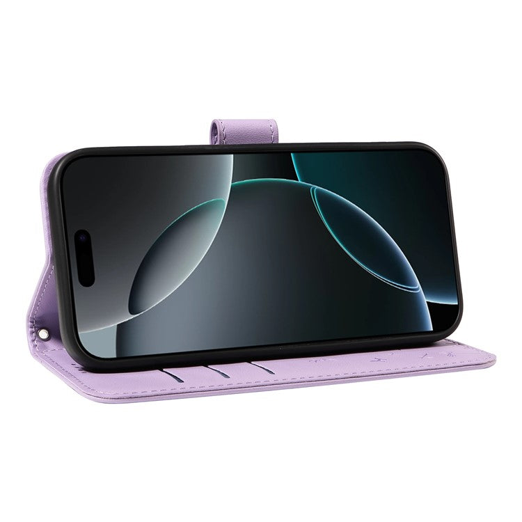 For iPhone 16 Pro Leather Case Wallet Phone Cover Dandelion Imprint - Purple