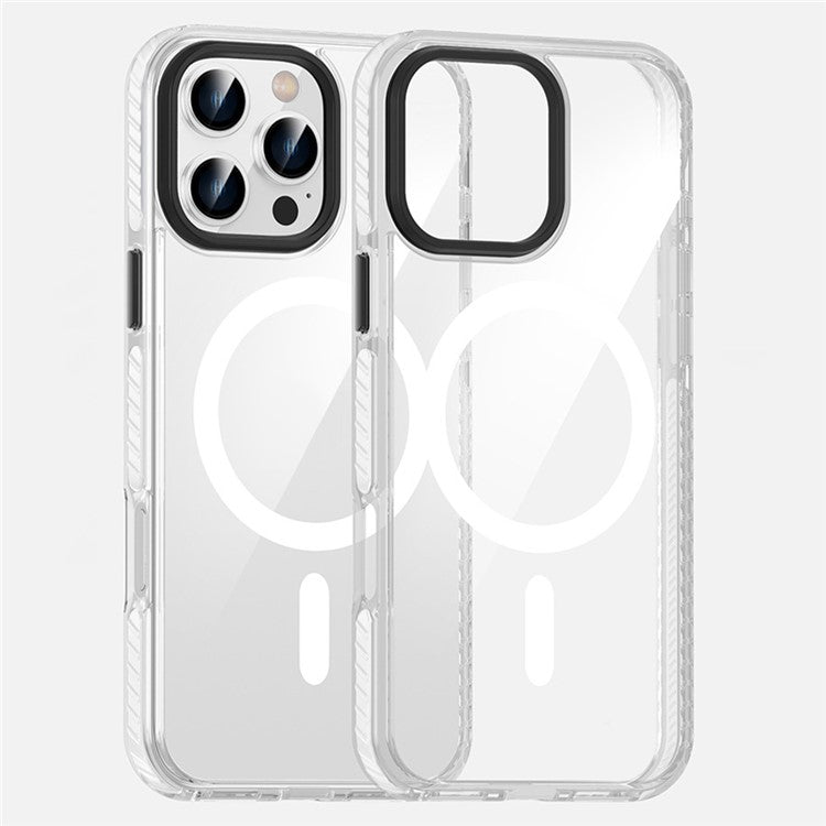 For iPhone 16 Pro Magnetic Case Clear Phone Cover PC +TPU Anti-slip Compatible with MagSafe - Transparent