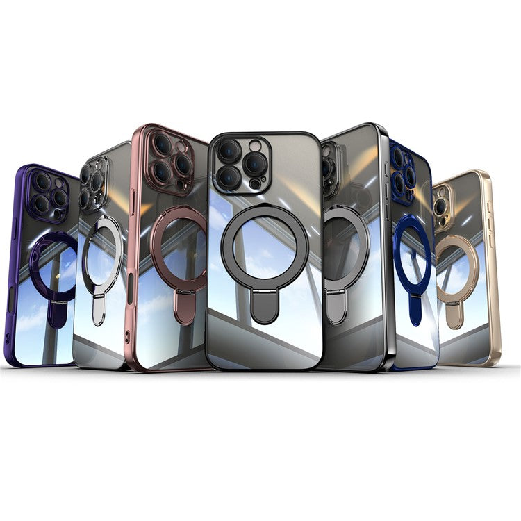 For iPhone 16 Pro Magnetic Case Electroplating Kickstand TPU Phone Cover - Rose Gold