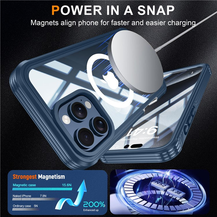 For iPhone 16 Pro Magnetic Case PC + TPU Full Protection Phone Cover with Screen Film - Dark Blue