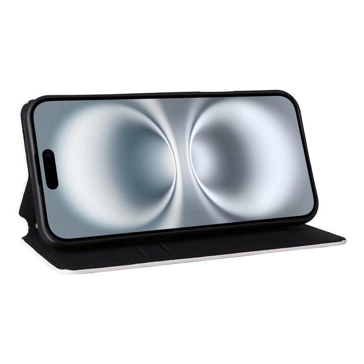 For iPhone 16 Wallet Case Rhombus Imprinted Leather Phone Cover - Silver