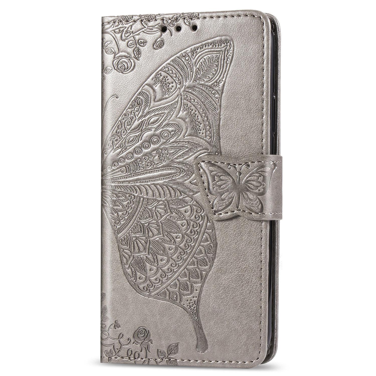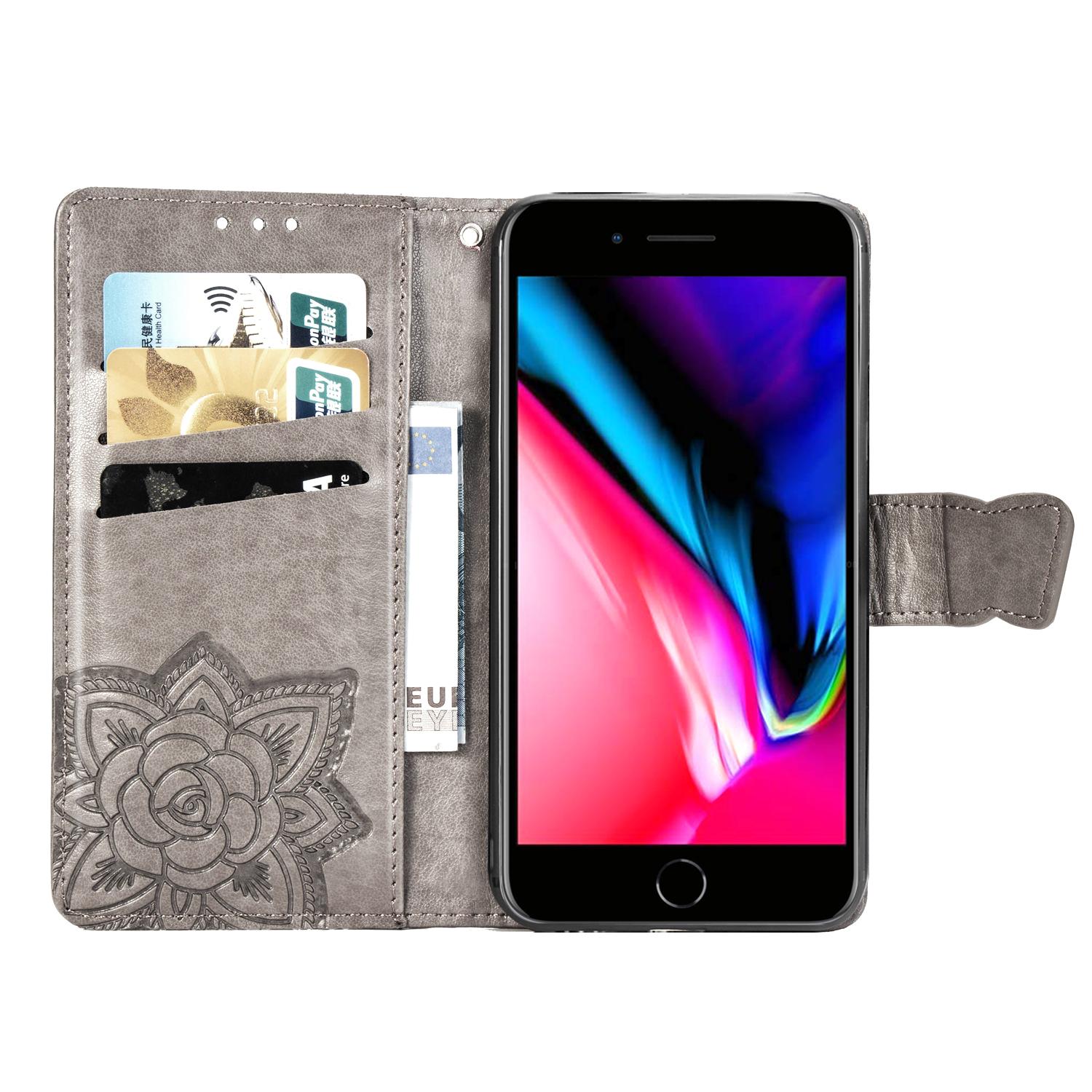 For iPhone 16e Butterfly Love Flower Embossed Leather Phone Case(Gray)