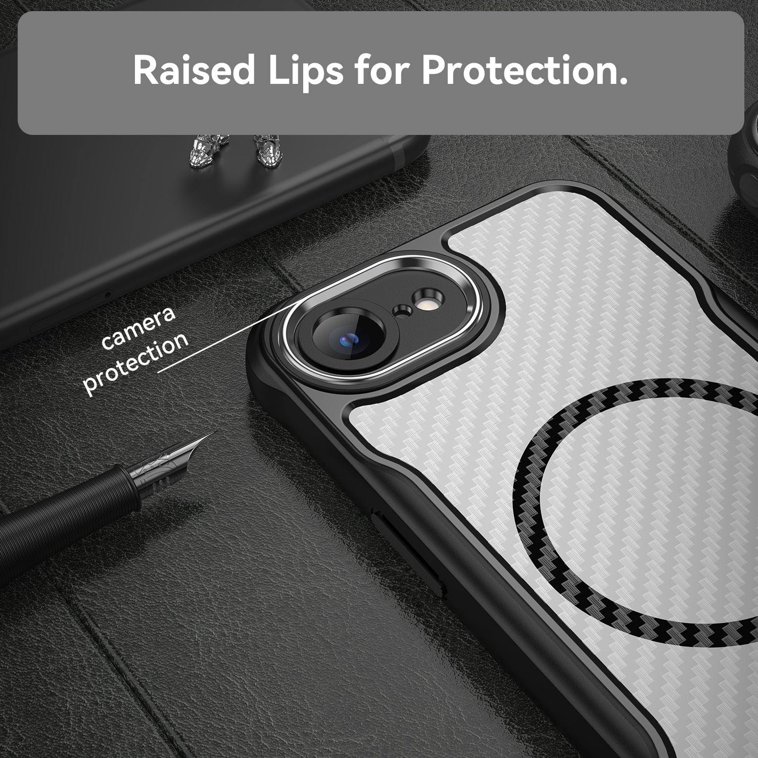 For iPhone 16e Carbon Fiber Texture MagSafe Translucent Phone Case(Black)