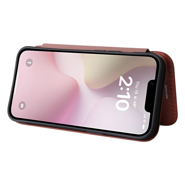 For iPhone 16e Case Carbon Fiber Texture Drop-Proof PU Leather Phone Cover - Brown