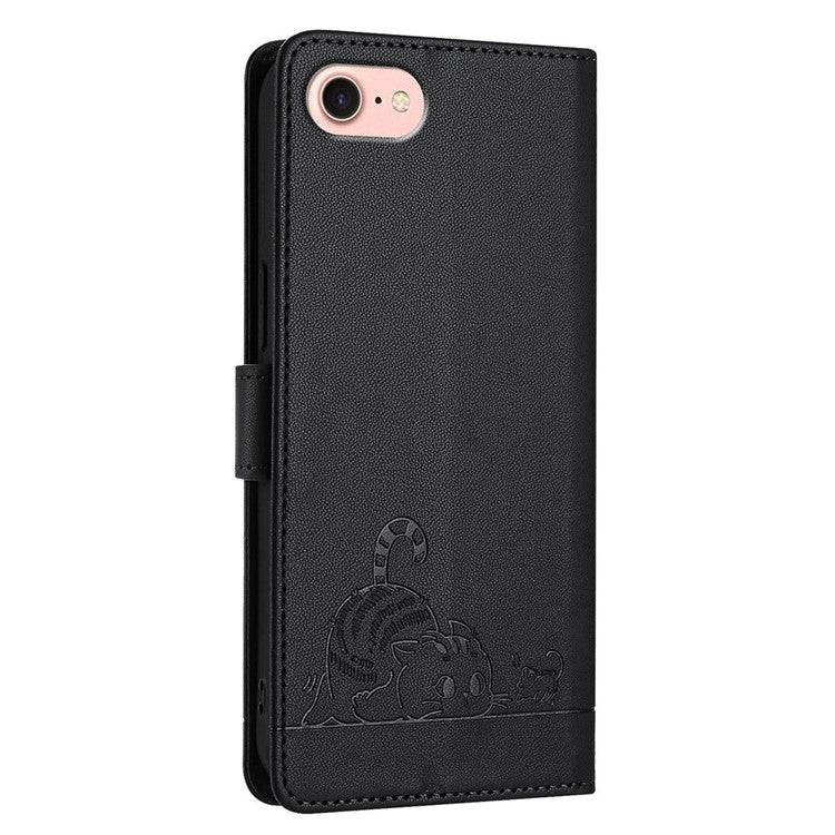 For iPhone 16e Case Cat Mouse Pattern RFID Blocking Leather Cover - Black