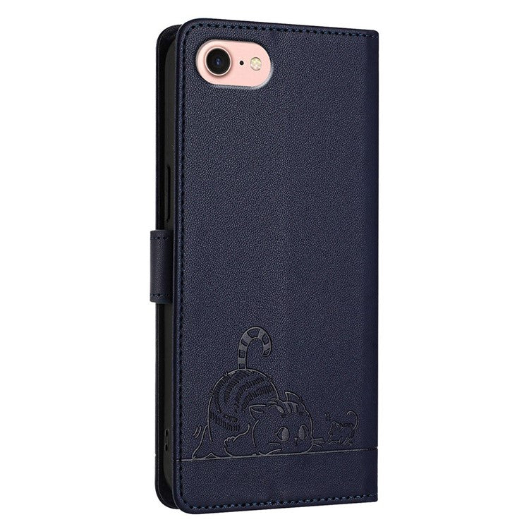 For iPhone 16e Case Cat Mouse Pattern RFID Blocking Leather Cover - Sapphire
