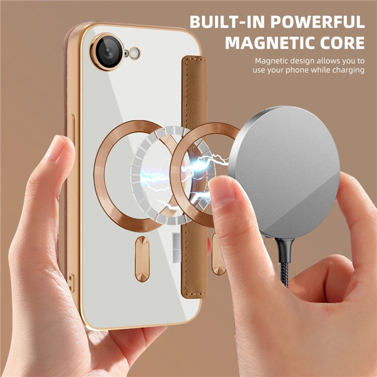 For iPhone 16e Case Compatible with MagSafe RFID Blocking Leather Phone Cover - Brown