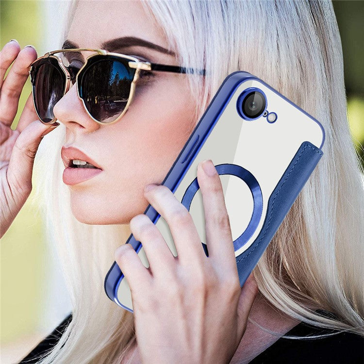 For iPhone 16e Case Compatible with MagSafe RFID Blocking Leather Phone Cover - Sapphire
