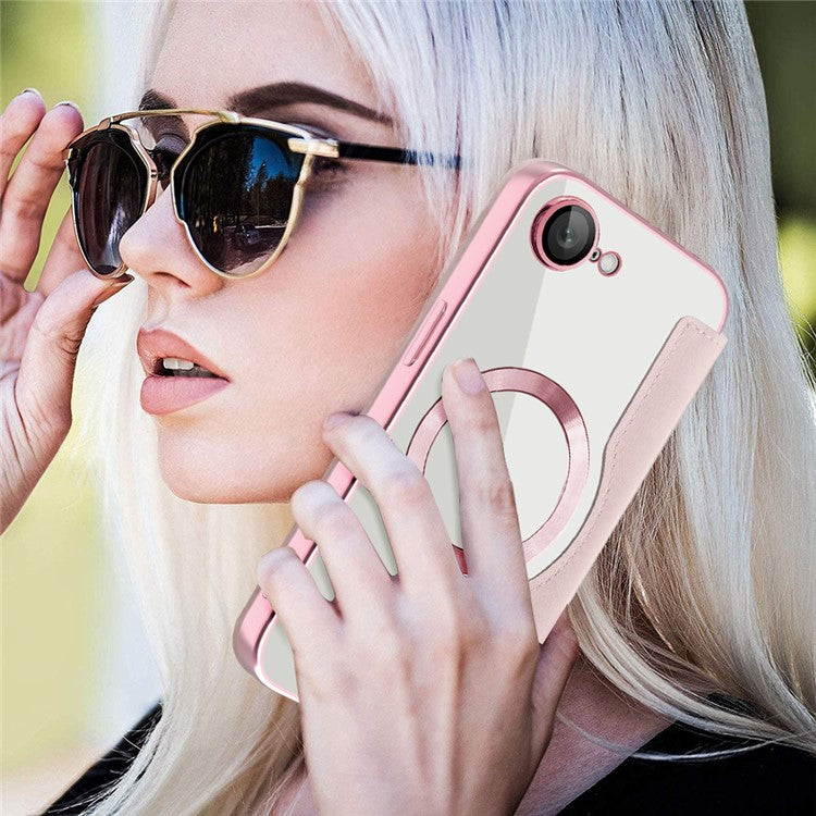 For iPhone 16e Case Compatible with MagSafe Rhombus PU Leather Phone Cover - Pink
