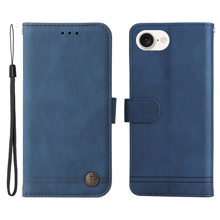 For iPhone 16e Case Magnetic Clasp Folio Flip Stand Leather+TPU Phone Cover - Blue