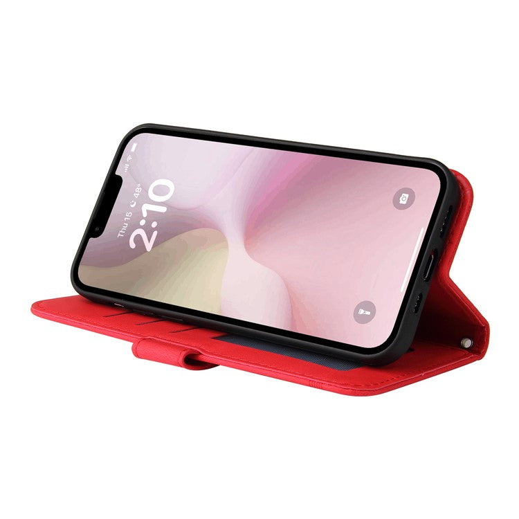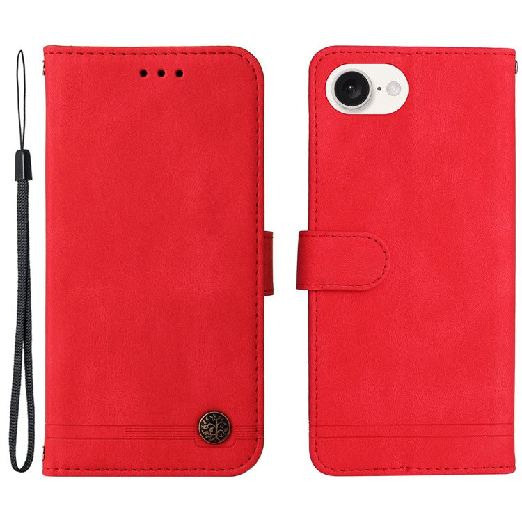 For iPhone 16e Case Magnetic Clasp Folio Flip Stand Leather+TPU Phone Cover - Red
