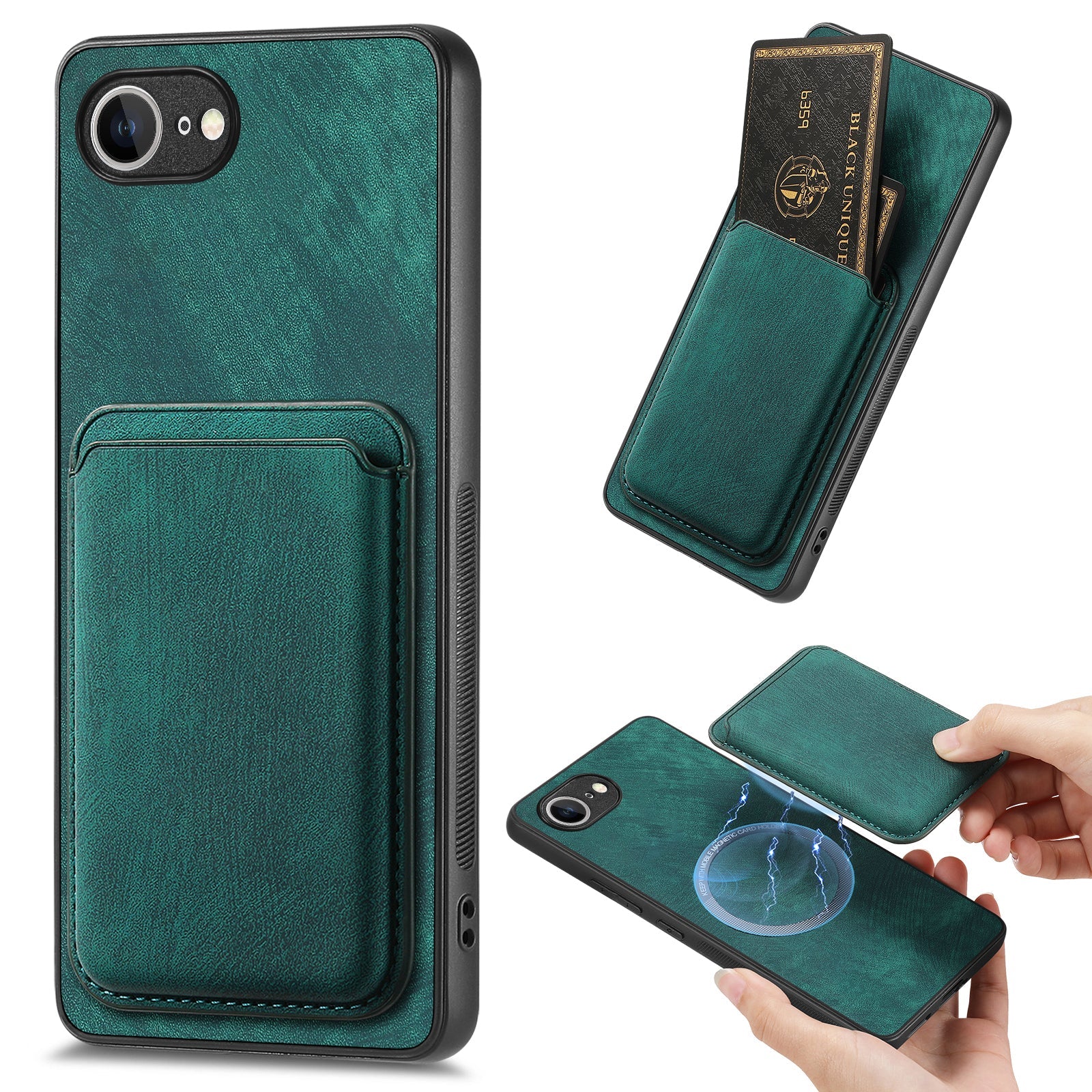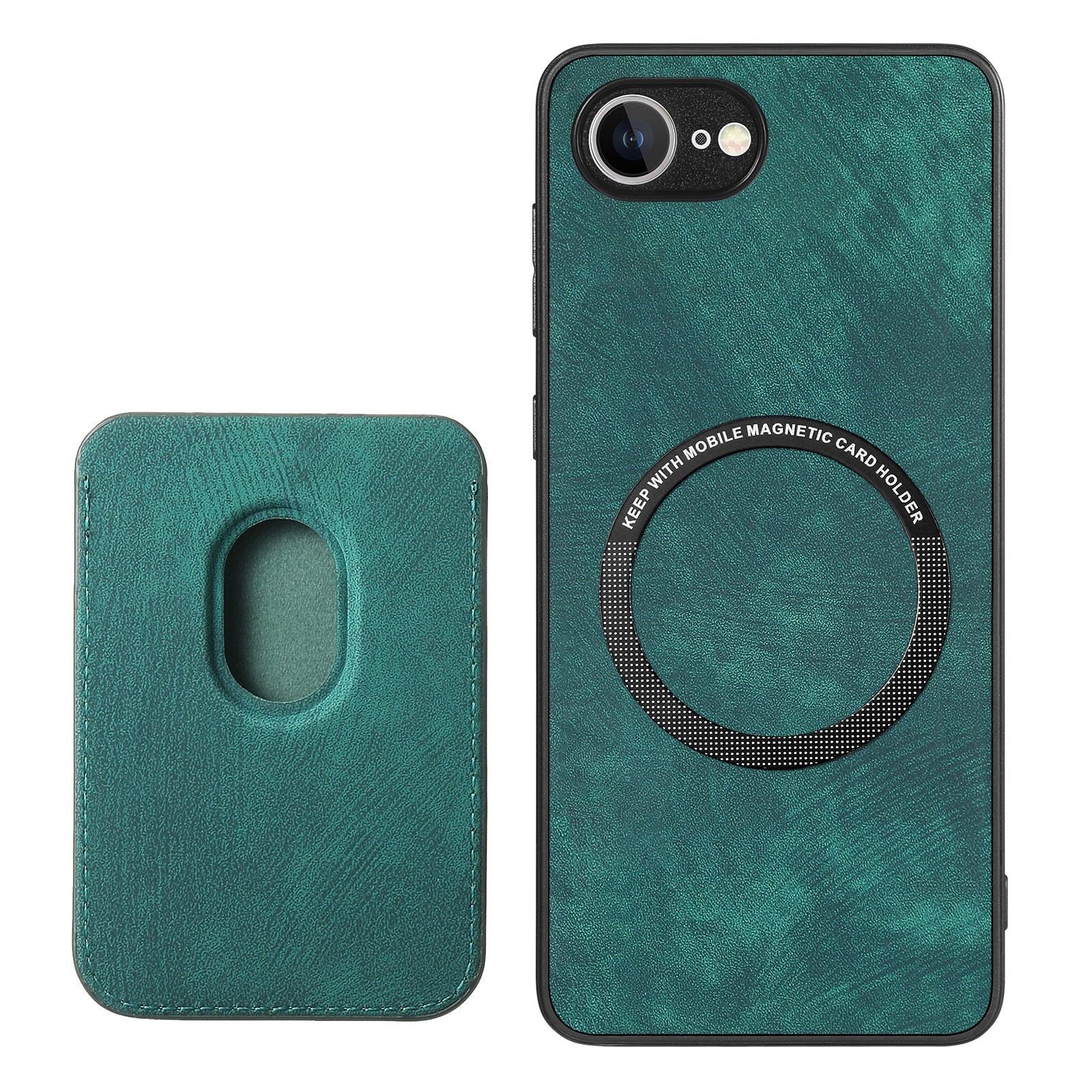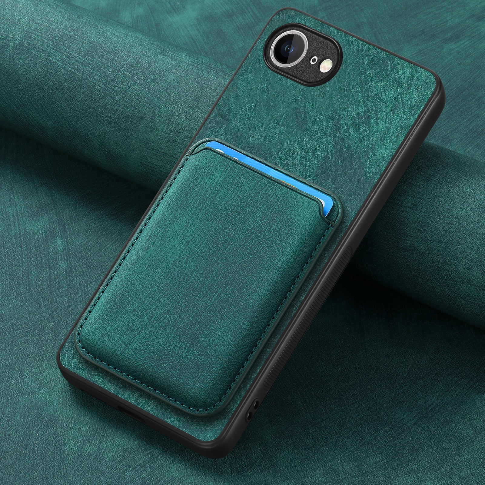 For iPhone 16e Case Retro Leather TPU Phone Back Cover with Detachable Card Slot - Green