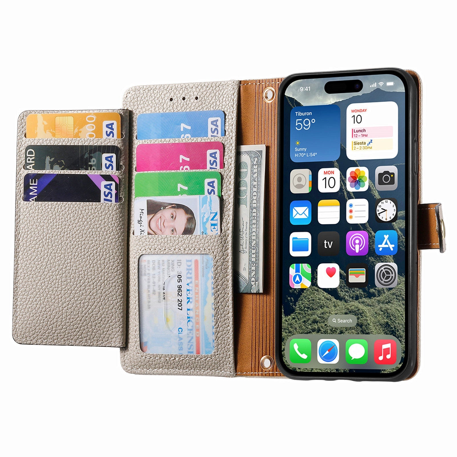 For iPhone 16e Case RFID Blocking Zipper Pocket Leather Wallet Phone Cover - Grey