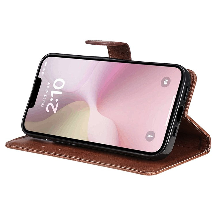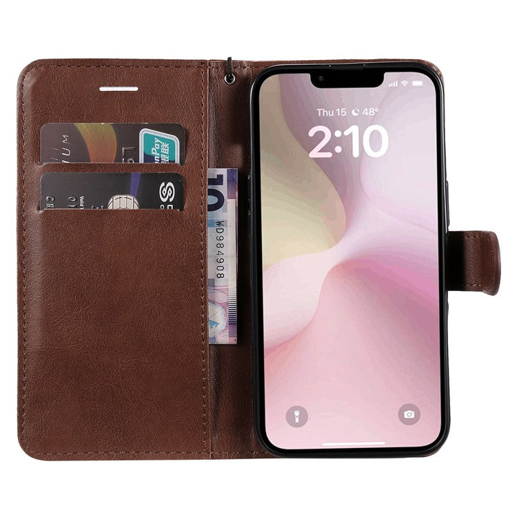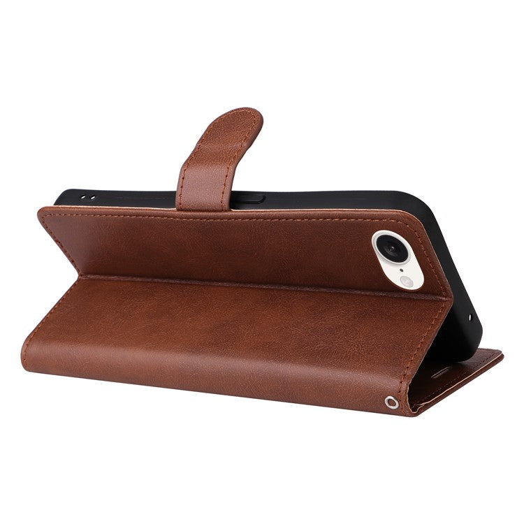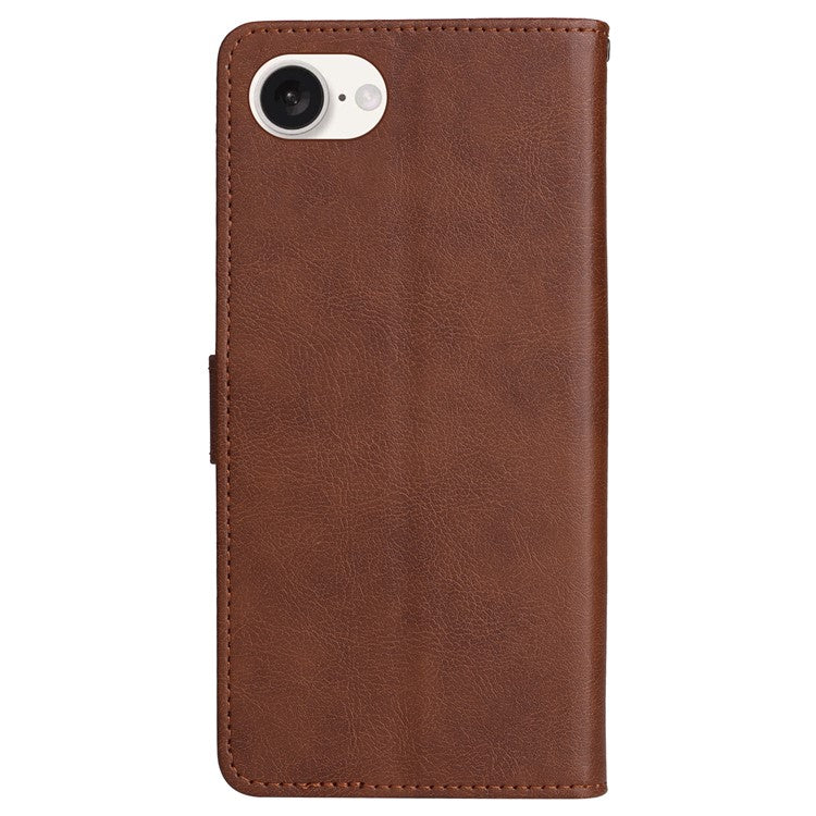 For iPhone 16e Case Solid Color Leather Mobile Cover Wallet Stand with Strap - Brown
