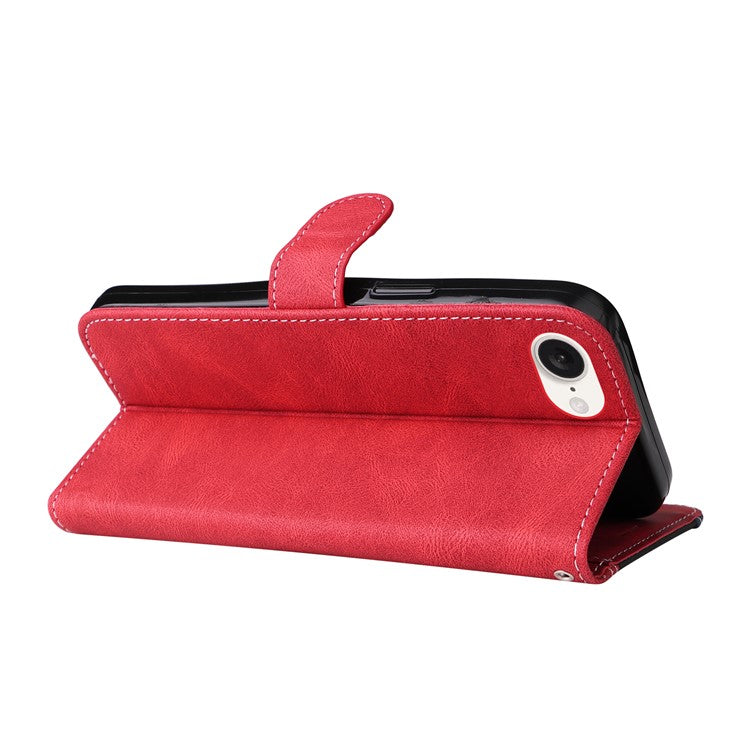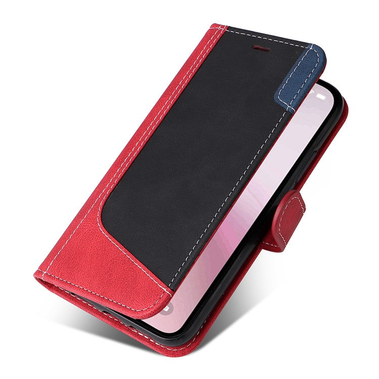 For iPhone 16e Case Wallet PU Leather Three-Color Splicing Phone Cover - Red