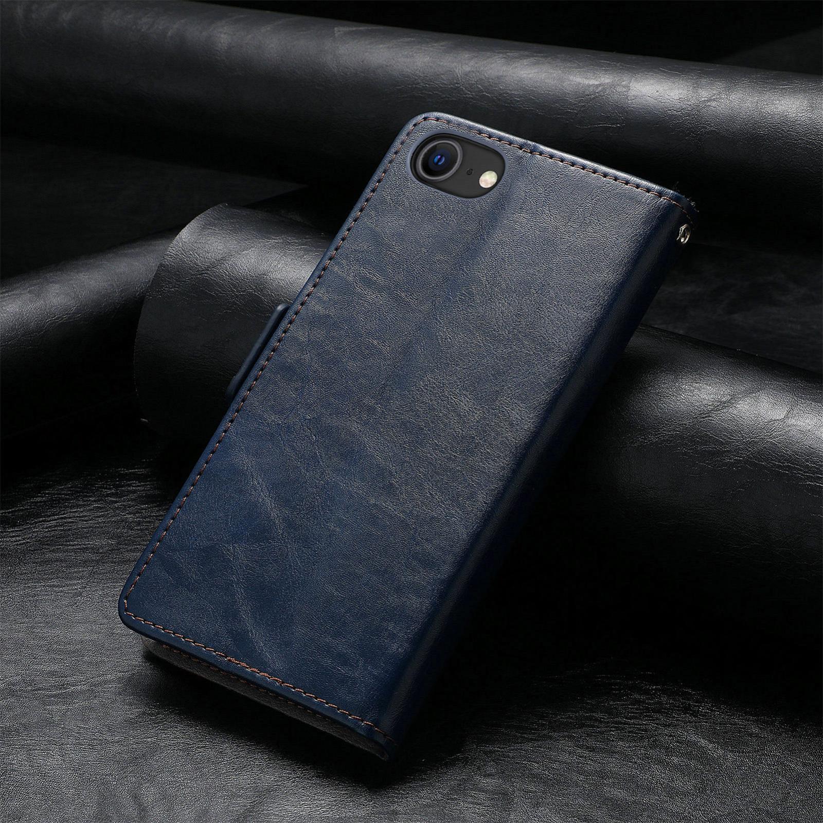 For iPhone 16e CaseNeo Splicing Dual Magnetic Buckle Leather Phone Case(Blue)