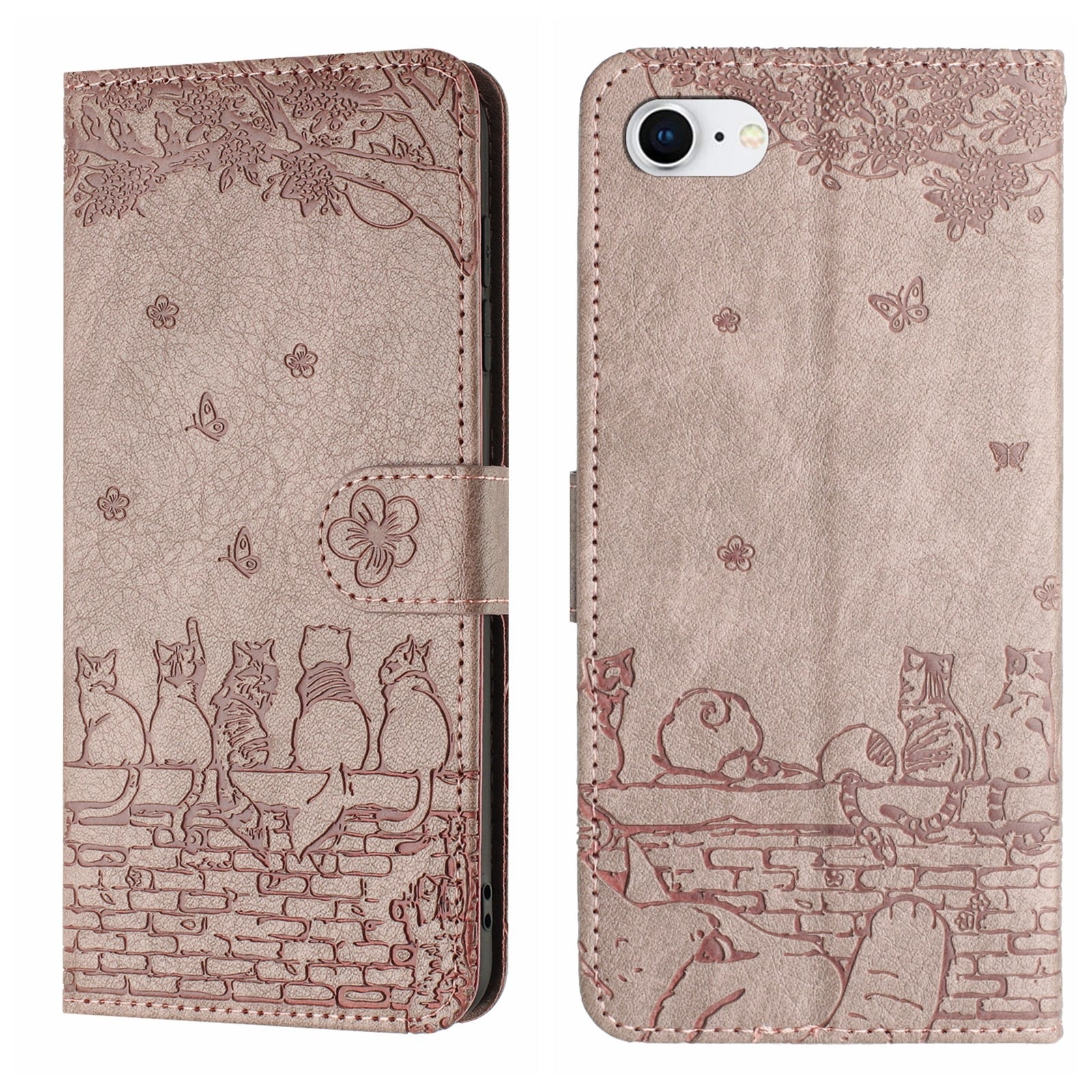 For iPhone 16e Cat Embossing Pattern Leather Phone Case with Lanyard(Grey)