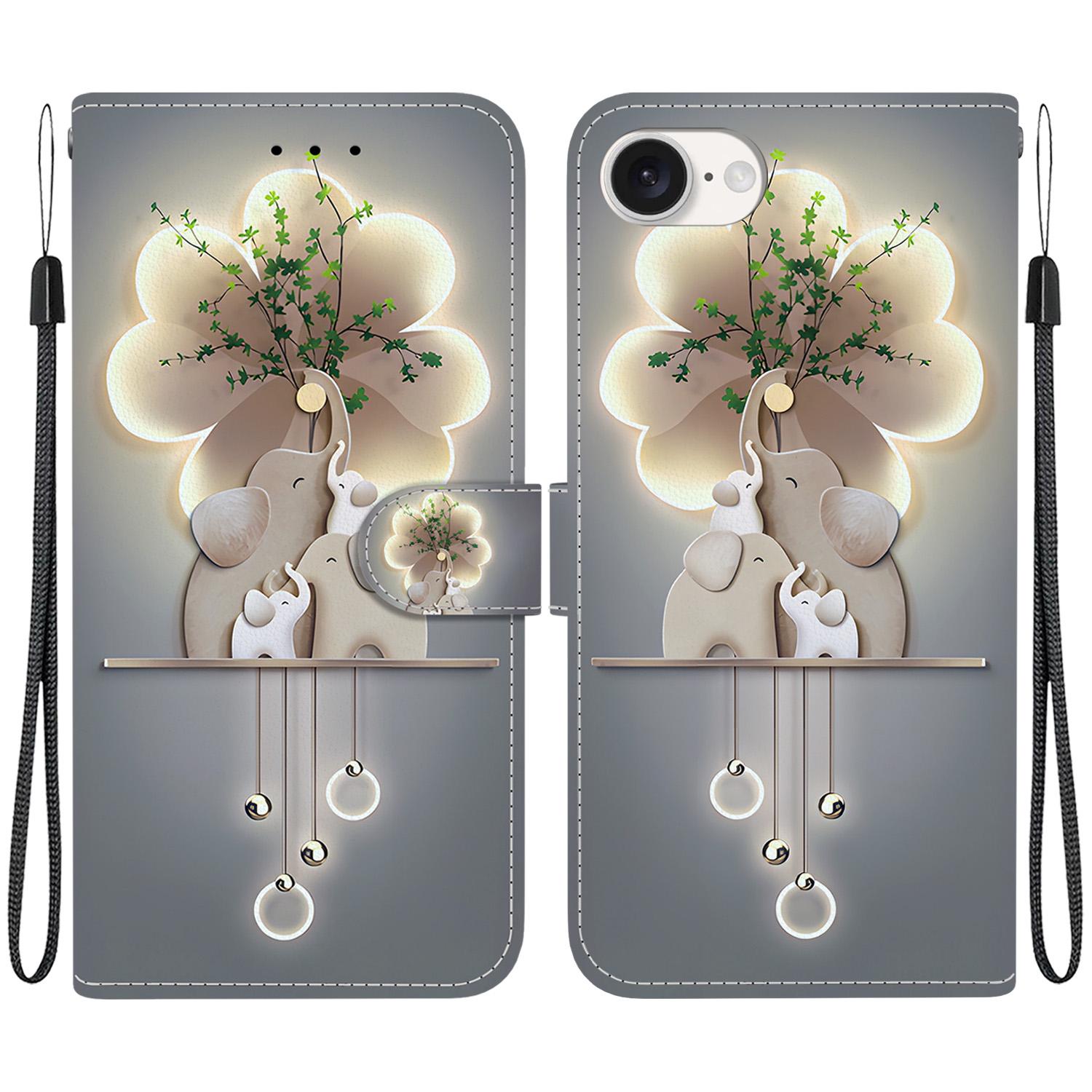 For iPhone 16e Crystal Texture Colored Drawing Leather Phone Case(Elephants)