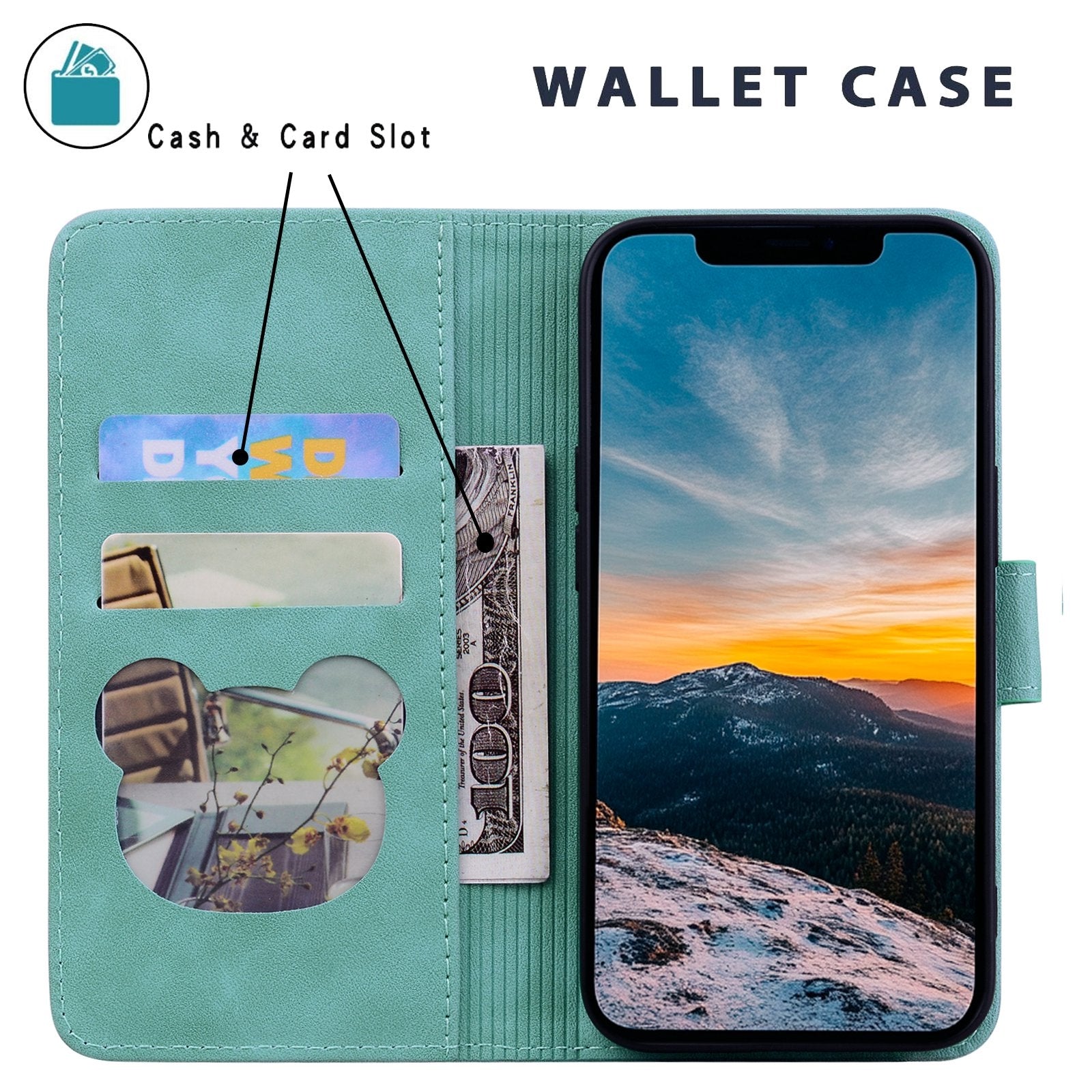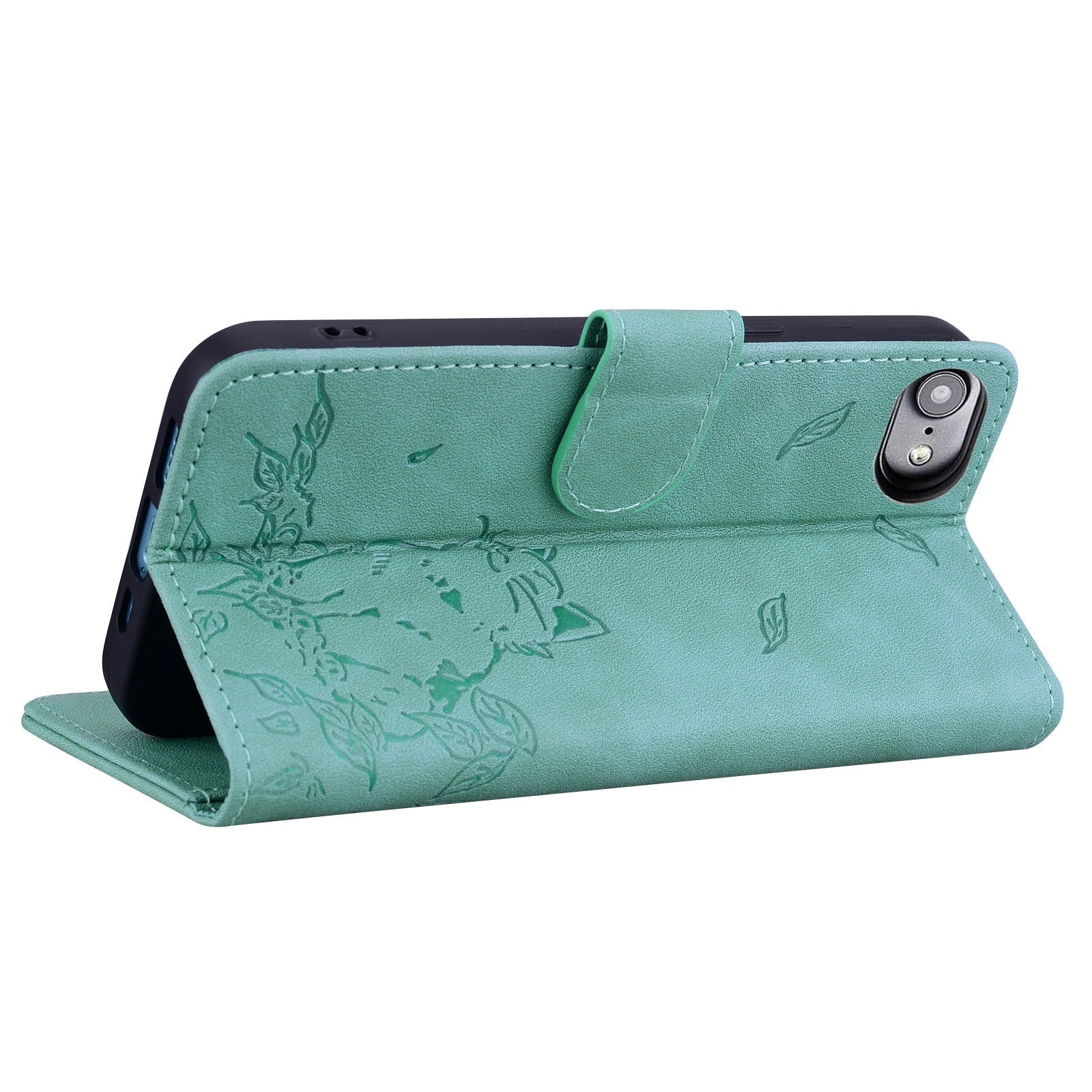For iPhone 16e Cute Cat Embossed Leather Phone Case(Green)