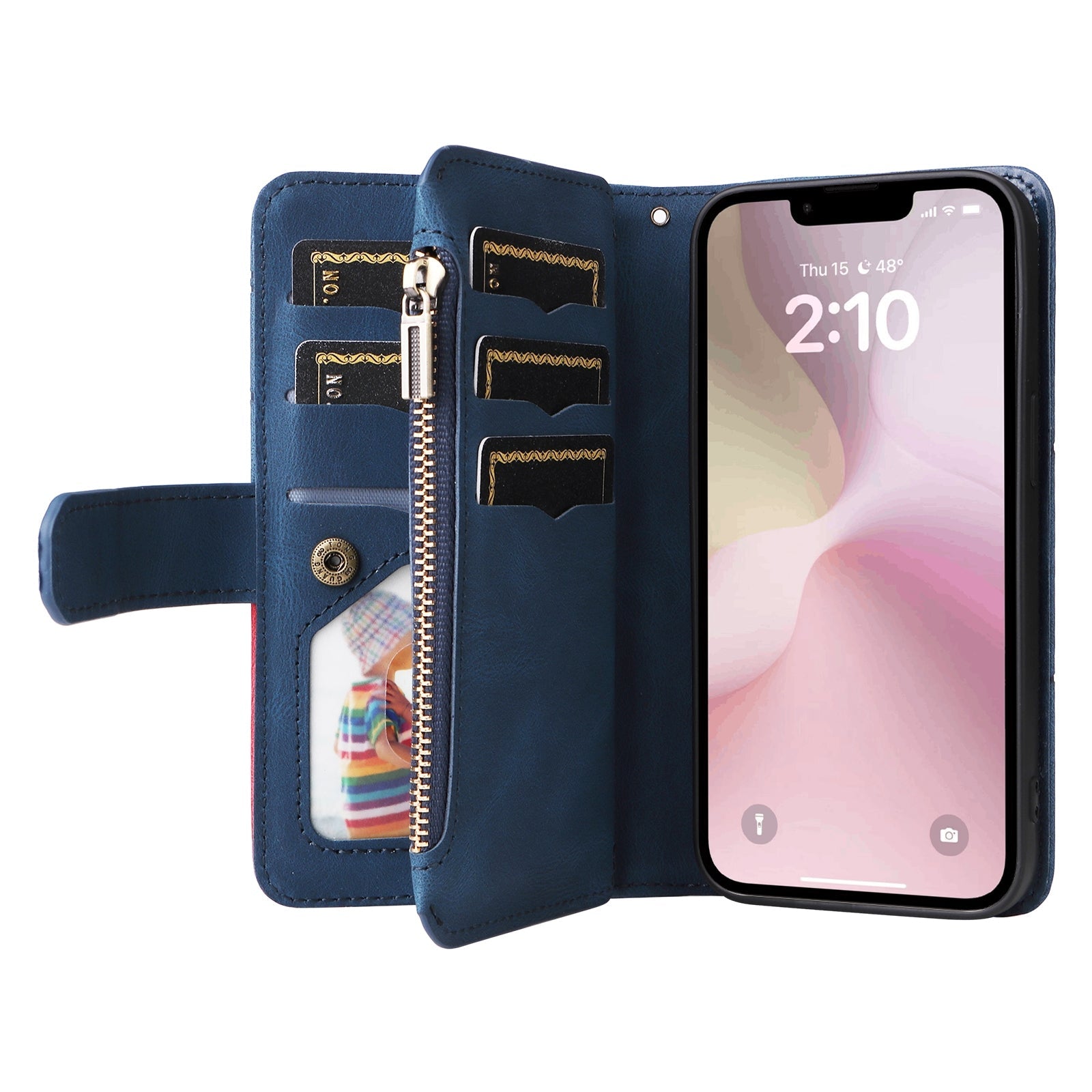 For iPhone 16e Dual-color 9 Card Slots Zipper Wallet Leather Phone Case(Blue)
