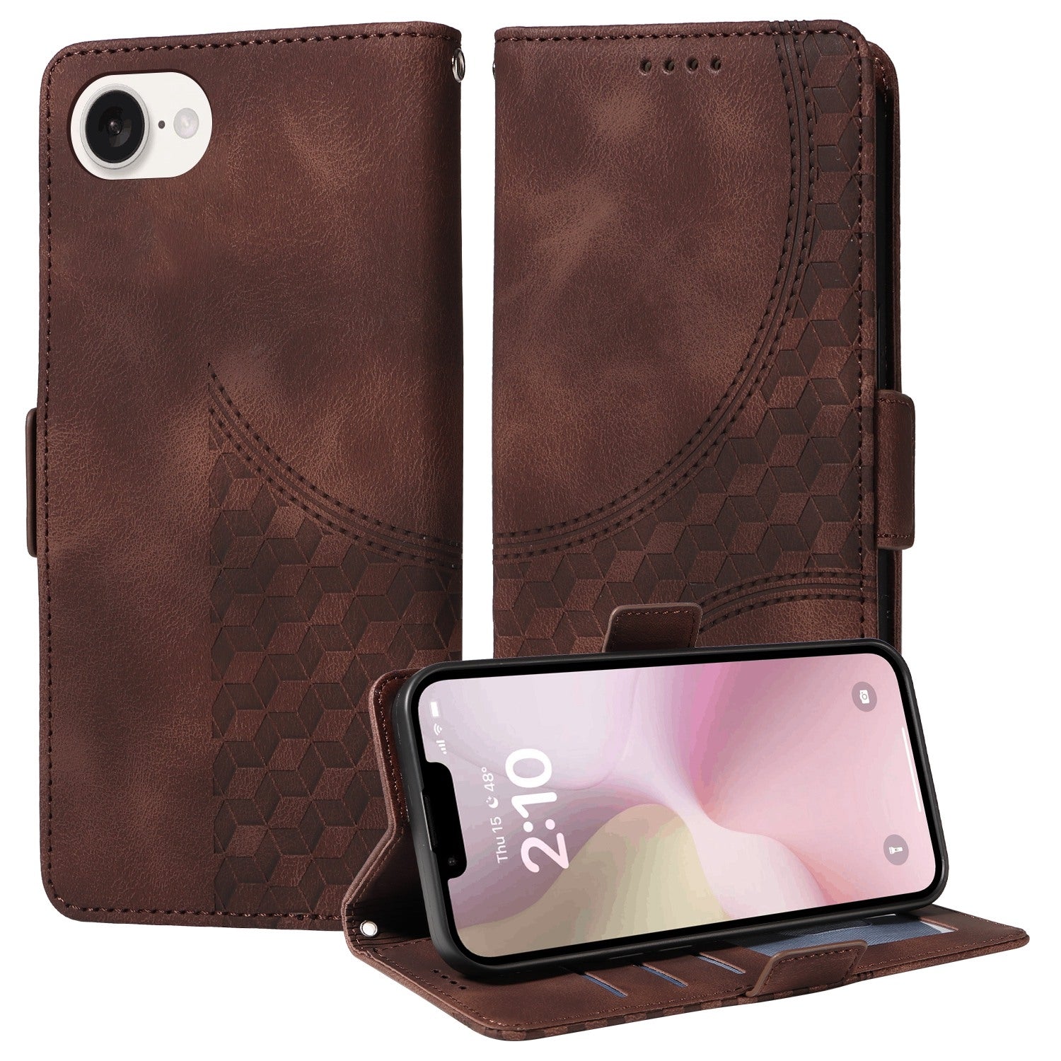 For iPhone 16e Embossed Rhombus Starry Leather Phone Case(Brown)