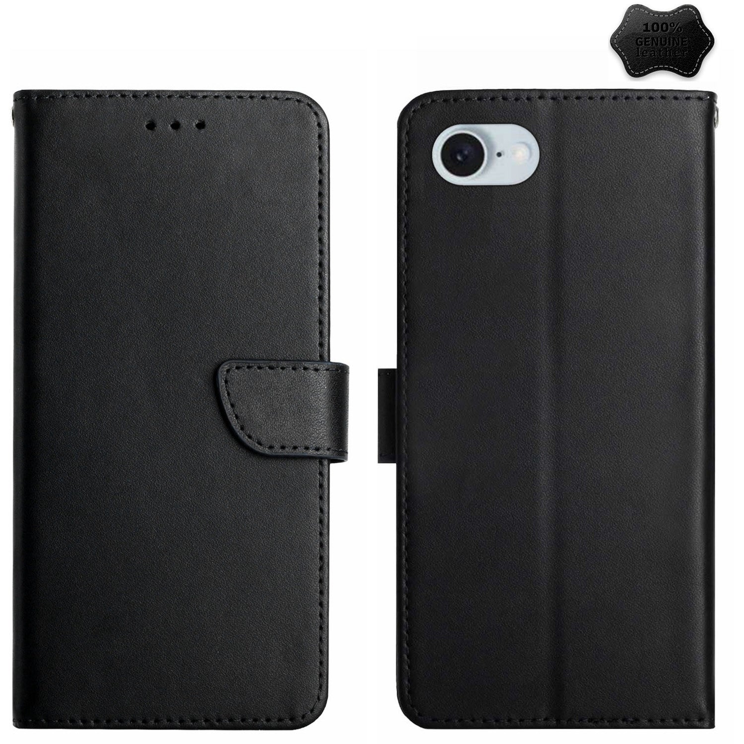For iPhone 16e Genuine Leather Fingerprint-proof Flip Phone Case(Black)