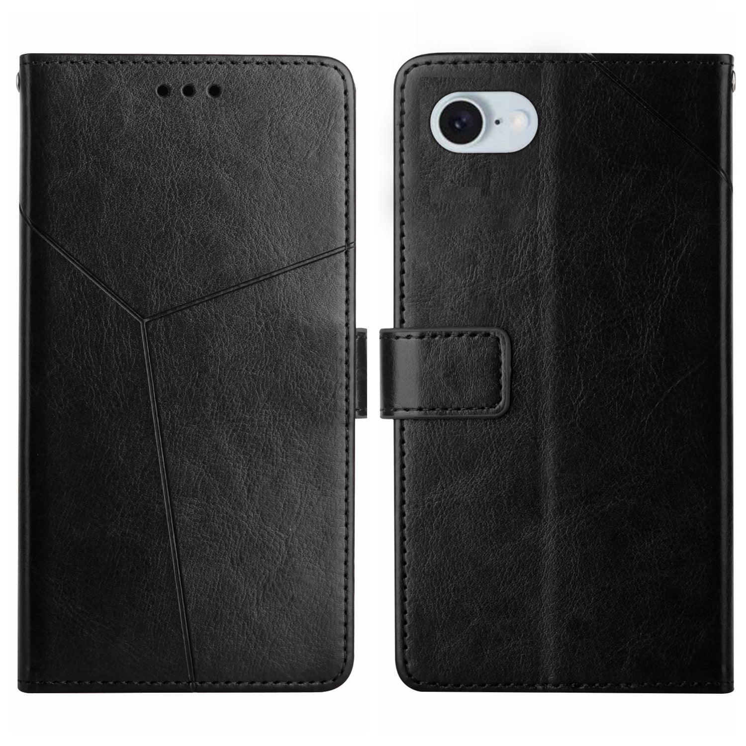 For iPhone 16e HT01 Y-shaped Pattern Flip Leather Phone Case(Black)