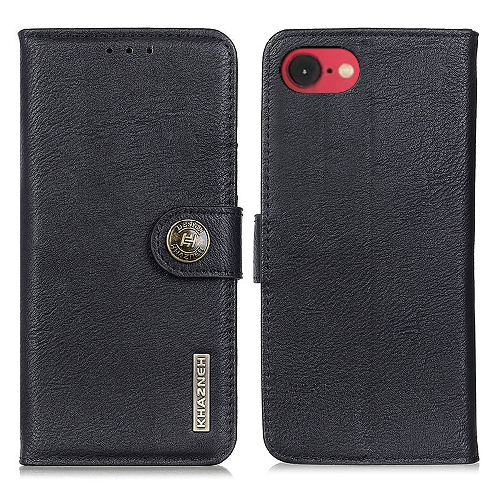 For iPhone 16e KHAZNEH Cowhide Texture Horizontal Flip Leather Phone Case(Black)