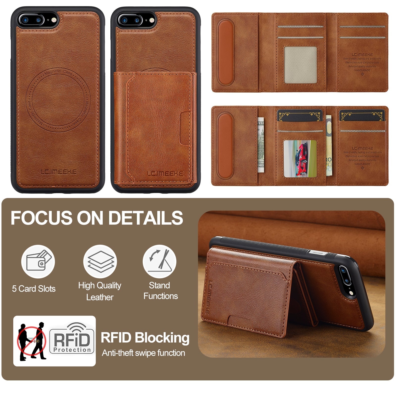 For iPhone 16e LC.IMEEKE L5 Series Detachable RFID Card Bag Magsafe Phone Case(Brown)