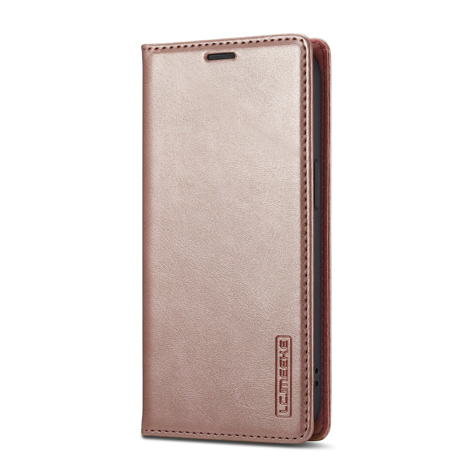 For iPhone 16e LC.IMEEKE Strong Magnetism Microfiber Leather Phone Case(Rose Gold)