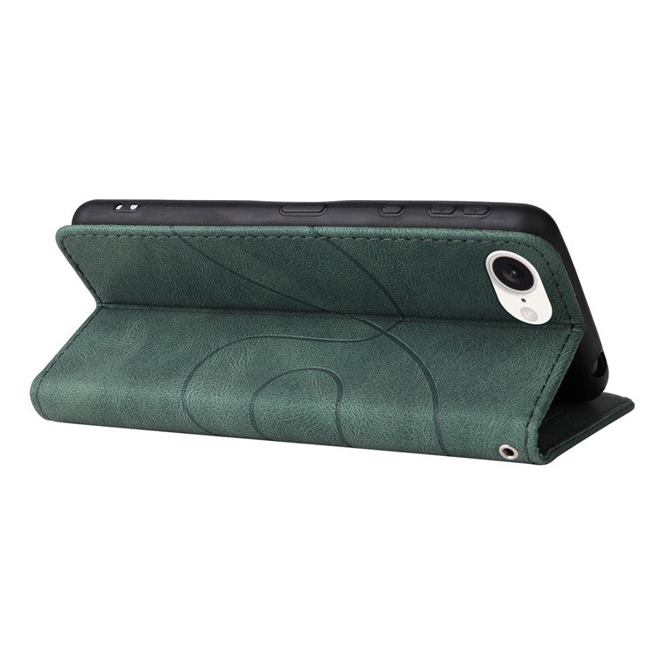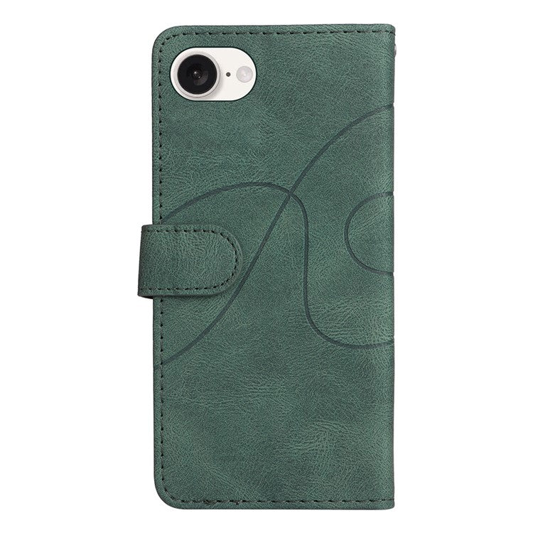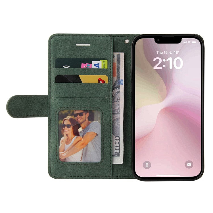 For iPhone 16e Leather Case Wallet Stand Color Splicing Phone Cover - Green