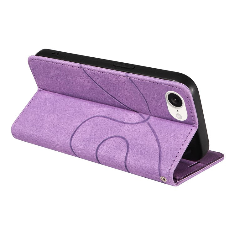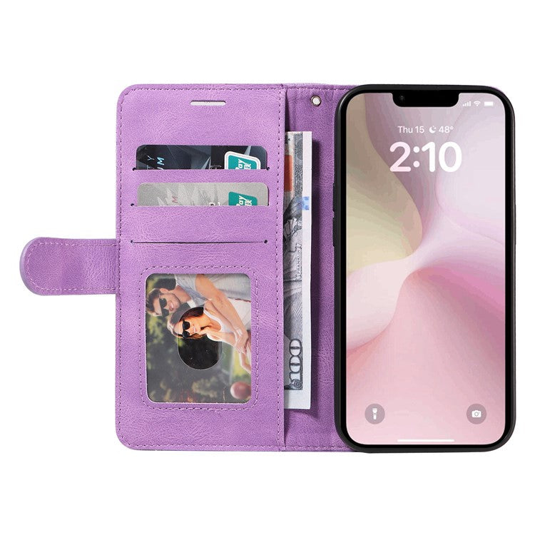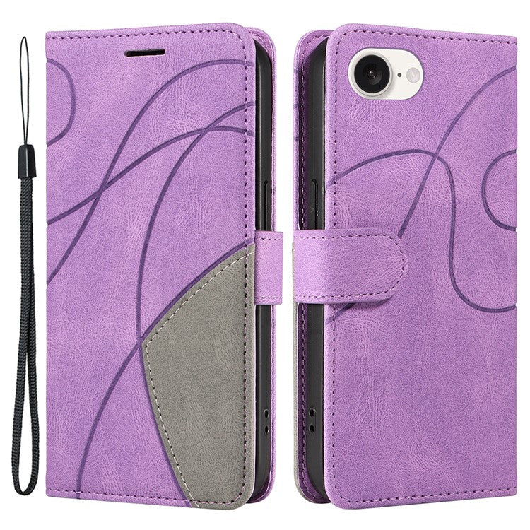 For iPhone 16e Leather Case Wallet Stand Color Splicing Phone Cover - Light Purple