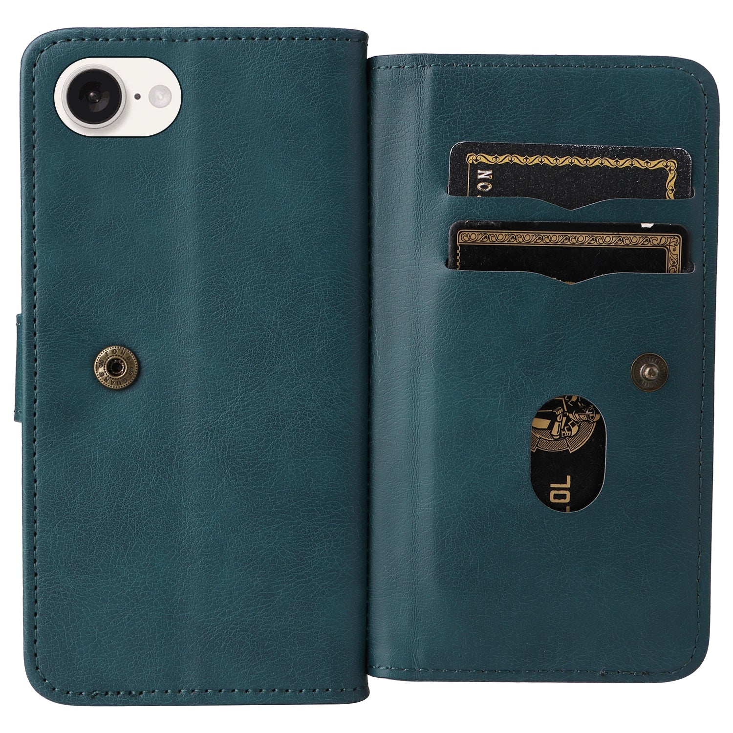 For iPhone 16e Multi-Function Wallet 10 Card Slots Leather Phone Case(Dark Green)