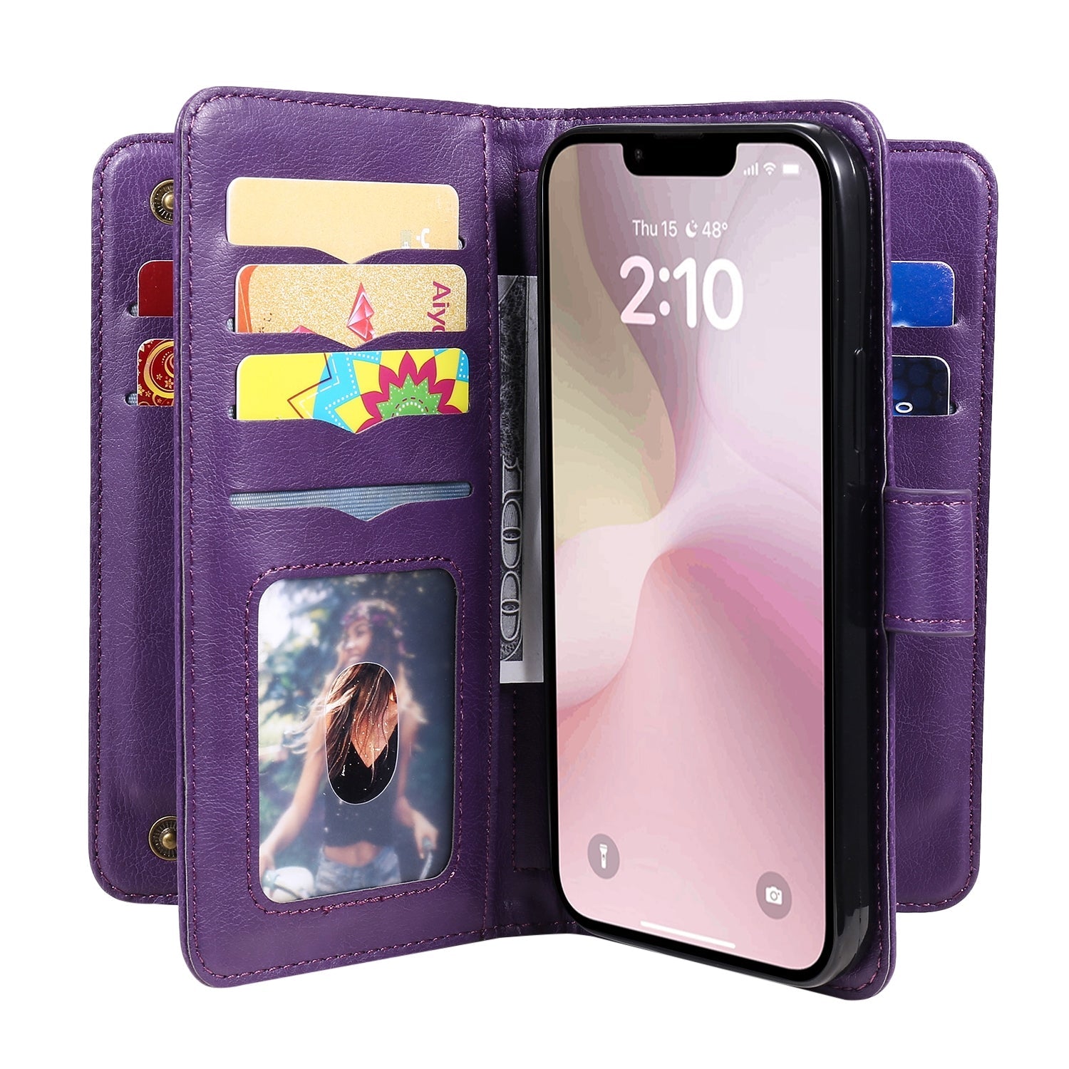For iPhone 16e Multi-Function Wallet 10 Card Slots Leather Phone Case(Violet)