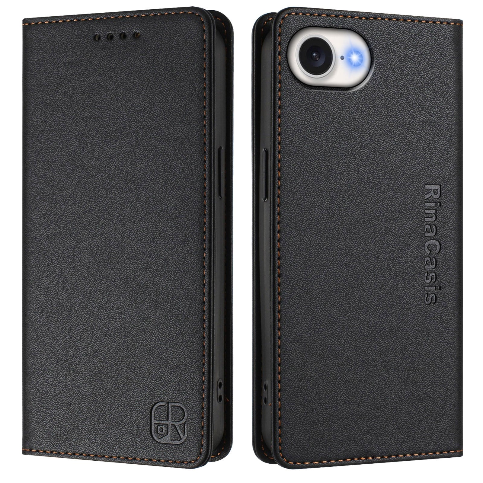 For iPhone 16e RC01 Dual-Folded Magnetic Suction RFID Leather Phone Case(Black)