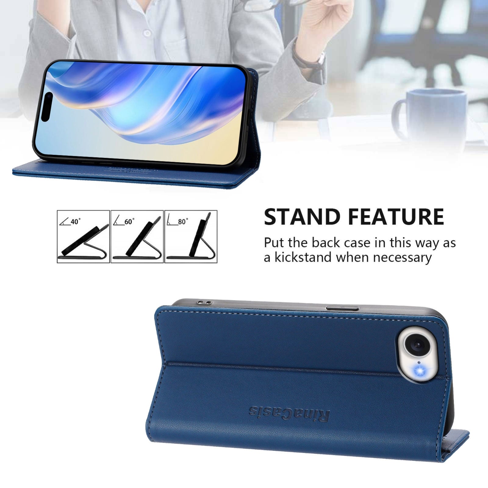 For iPhone 16e RC01 Dual-Folded Magnetic Suction RFID Leather Phone Case(Dark Blue)