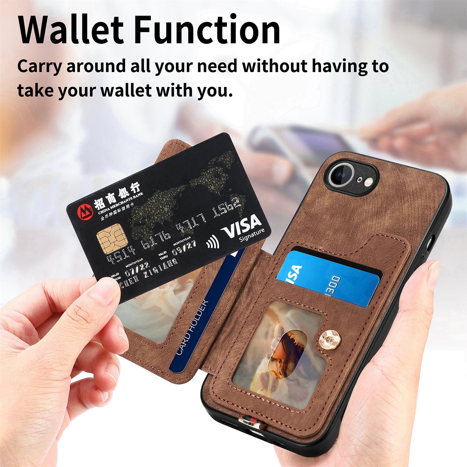For iPhone 16e Retro PU Leather Back Cover with RFID Blocking Card Holder - Brown