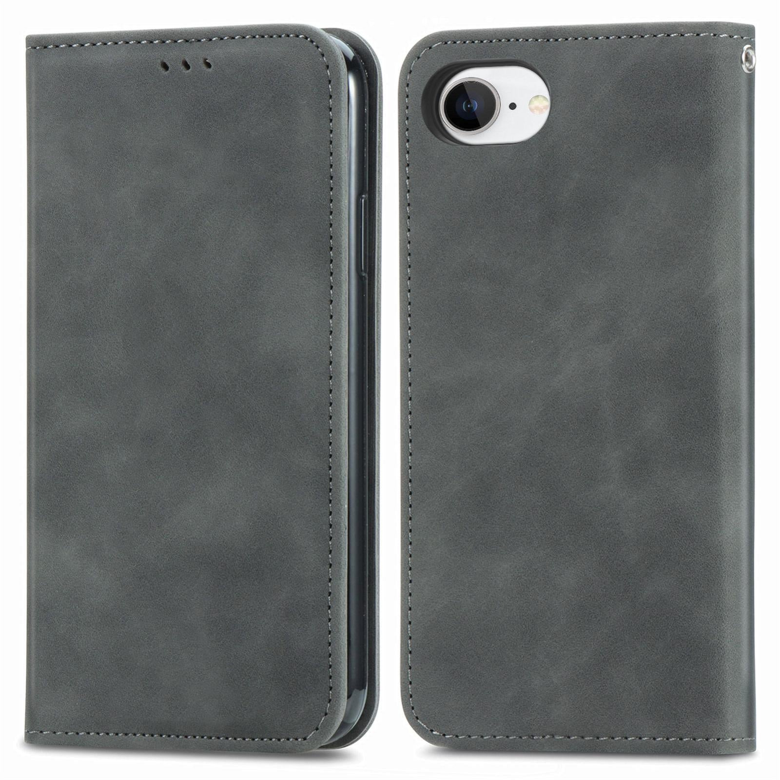 For iPhone 16e Retro Skin Feel Magnetic Flip Leather Phone Case(Gray)