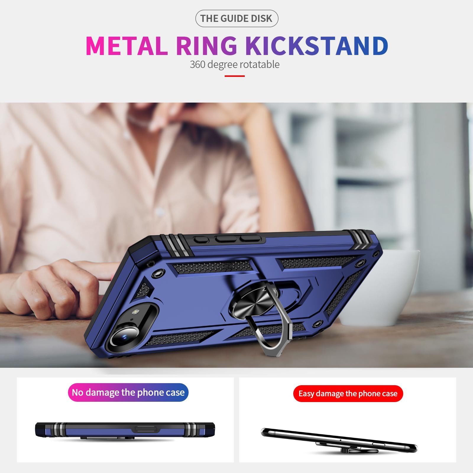 For iPhone 16e Shockproof TPU Hybrid PC Phone Case with Holder(Blue)