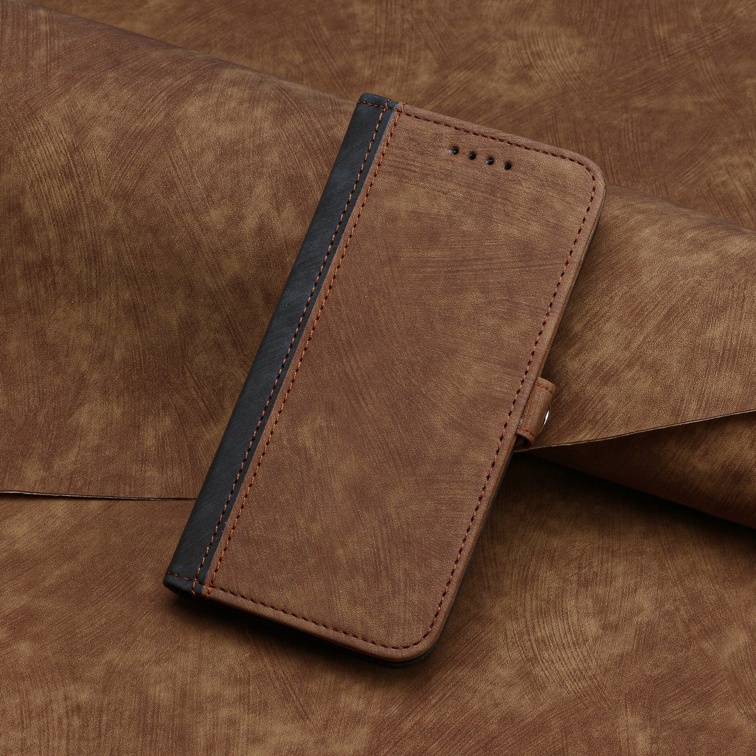 For iPhone 16e Side Buckle Double Fold Hand Strap Leather Phone Case(Brown)