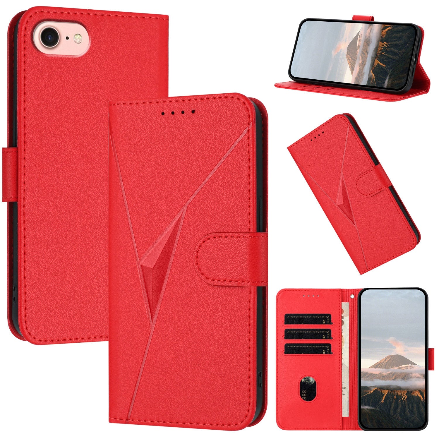 For iPhone 16e Triangle Pattern Buckle Clasp Leather Phone Case(Red)