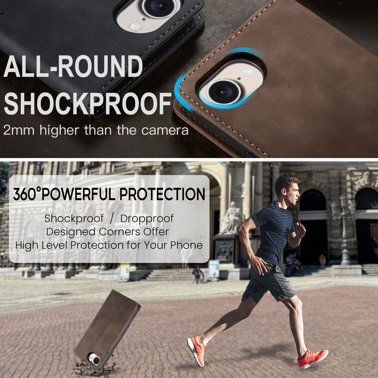 For iPhone 16e Wallet Case CASEME 013 Series PU Leather Phone Cover Stand - Coffee