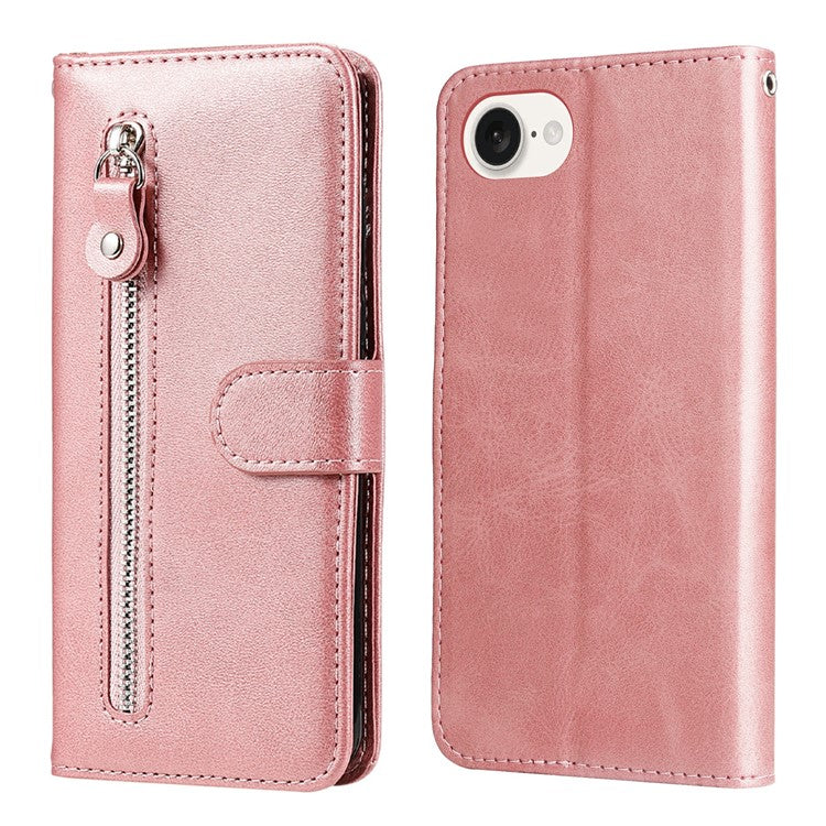For iPhone 16e Wallet Case Zipper Pocket Leather Phone Cover Wholesale - Pink
