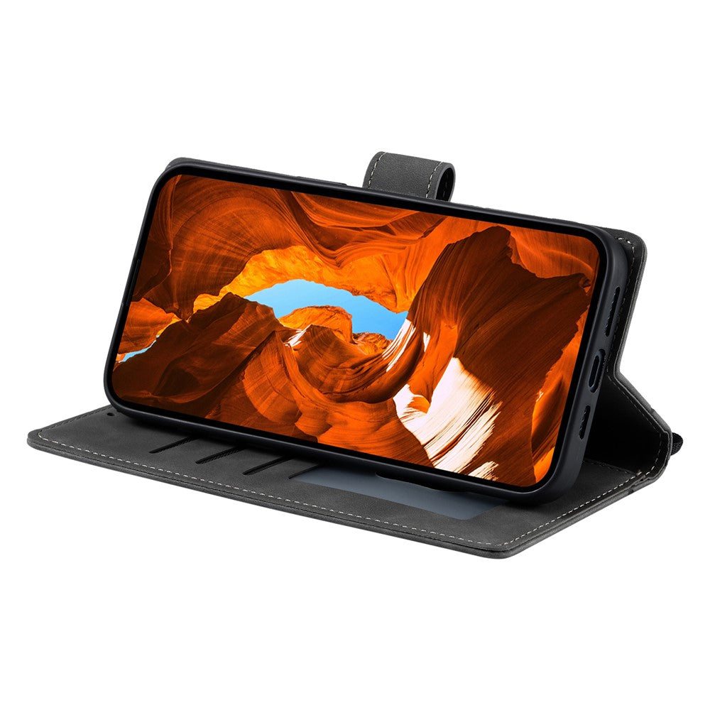 For iPhone 17 Pro Max Case Imprinted Totem Skin Feel Wallet Leather Phone Cover with Hand Strap - Grey