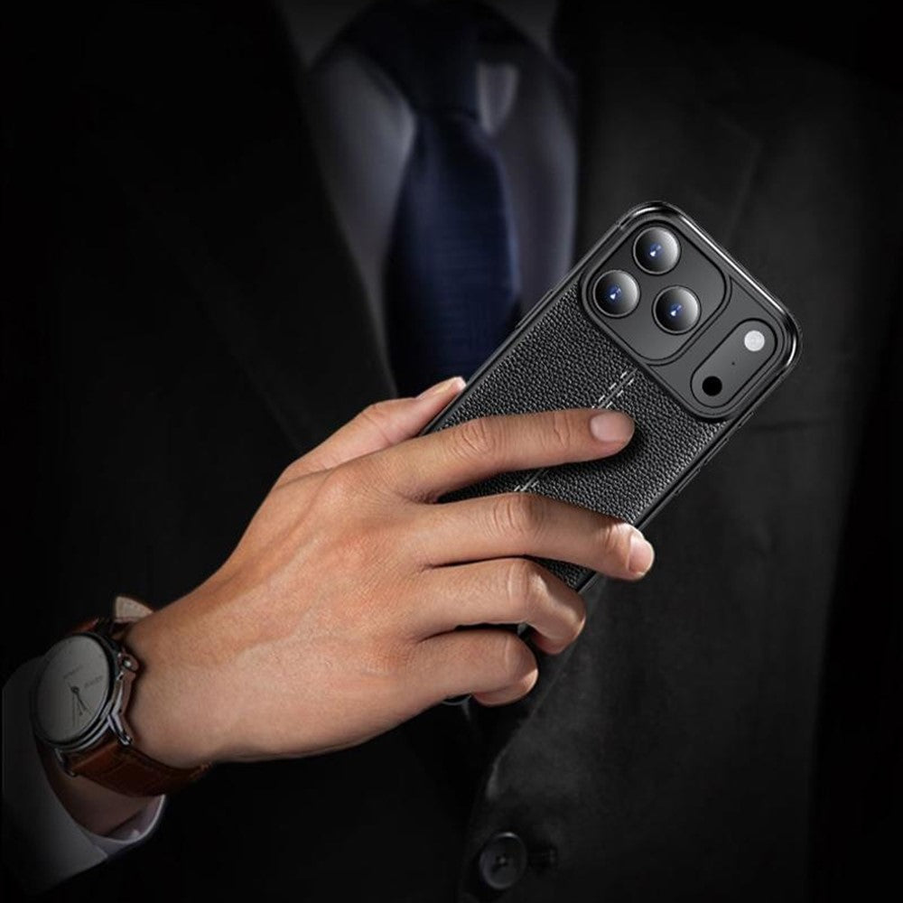For iPhone 17 Pro Max Case Litchi Texture TPU Flexible Phone Cover - Black