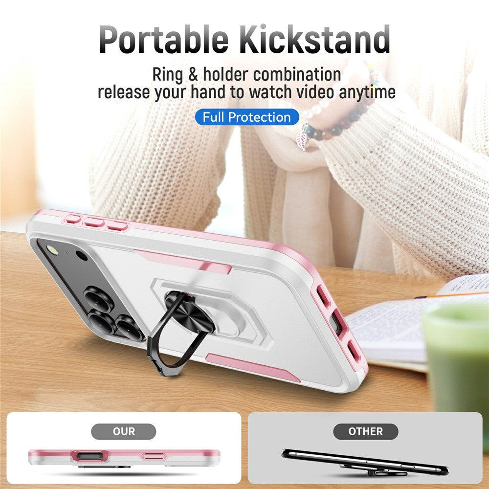 For iPhone 17 Pro Max Case Military Grade Ring Kickstand PC + TPU Phone Cover - White + Pink