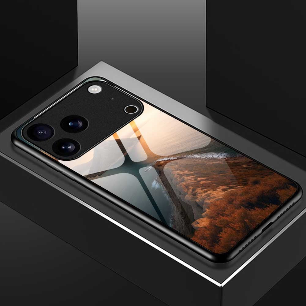 For iPhone 17 Pro Max Case PC TPU Tempered Glass Pattern Printing Shockproof Phone Back Cover - B0337